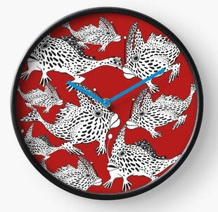 Many of our designs are available on printed polypropylene faced clocks made to order.